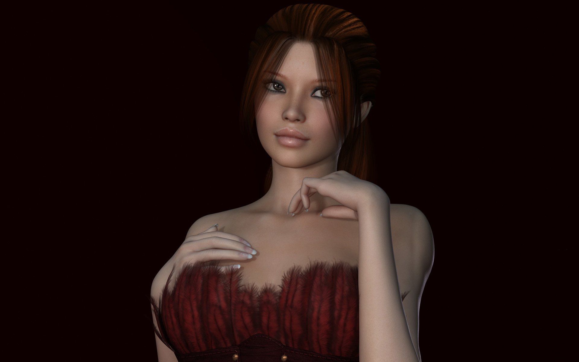 Une image en trois dimensions dans le style de jeu des filles dans les plumes sur fond noirUne image en trois dimensions dans le style de jeu des filles dans les plumes sur fond noir