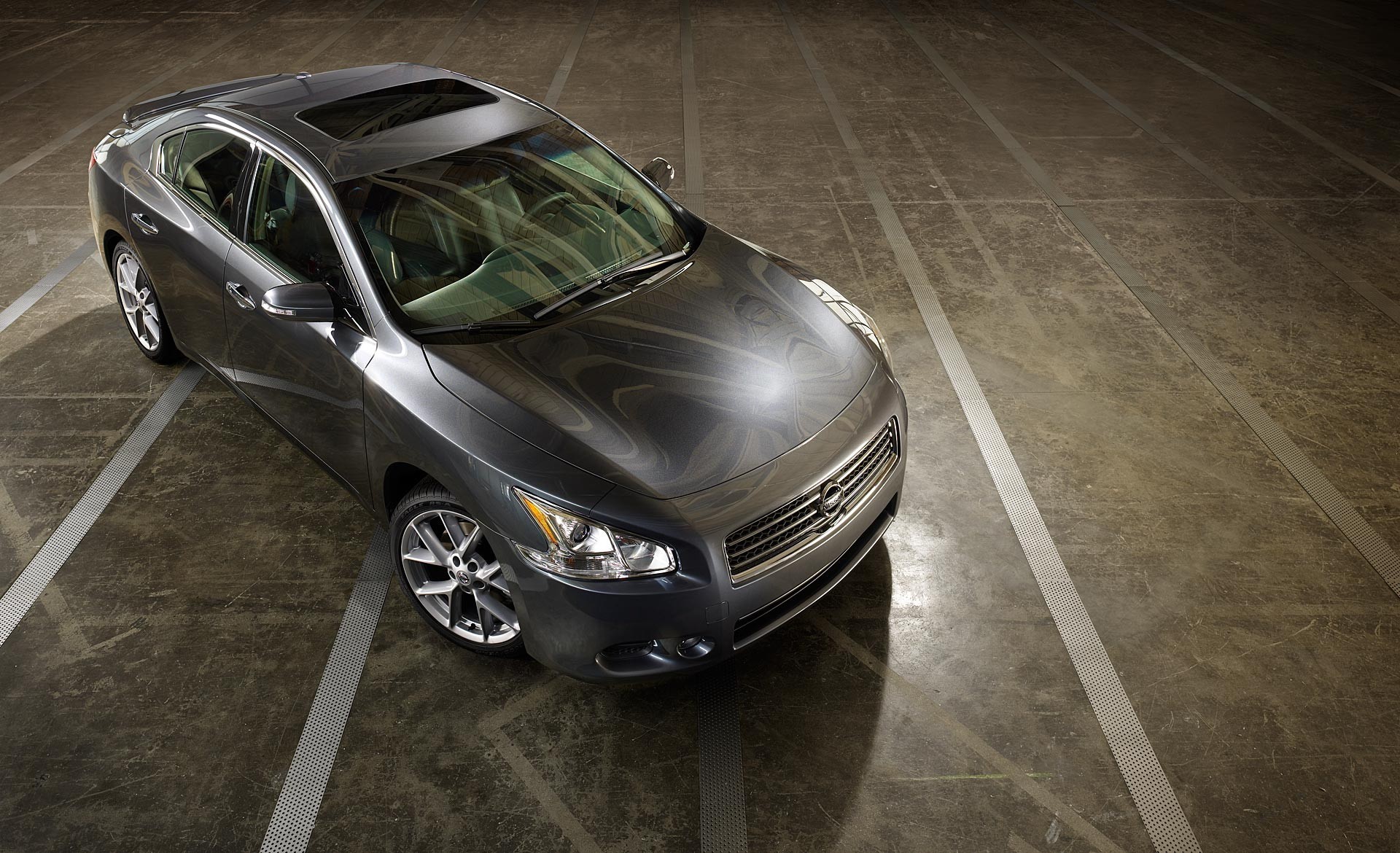 Voiture noire sur le parking, vue de dessus