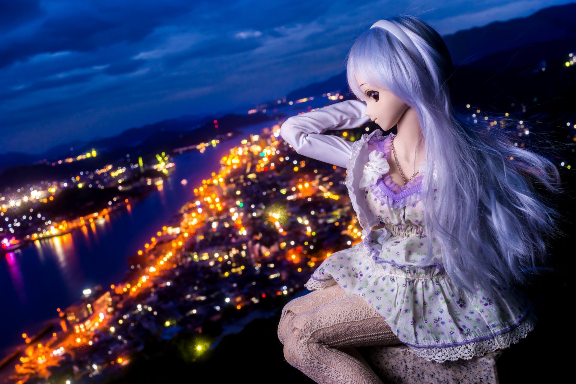 Poupée de style anime sur la ville de nuit