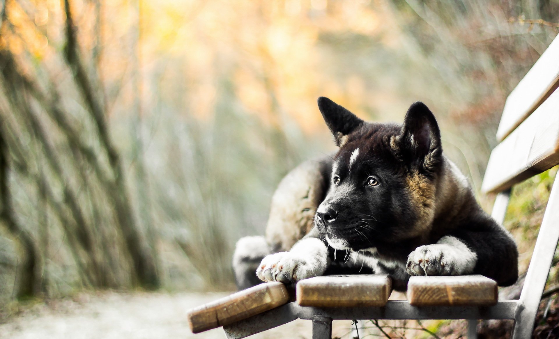Chien avec un regard suppliant sur le banc