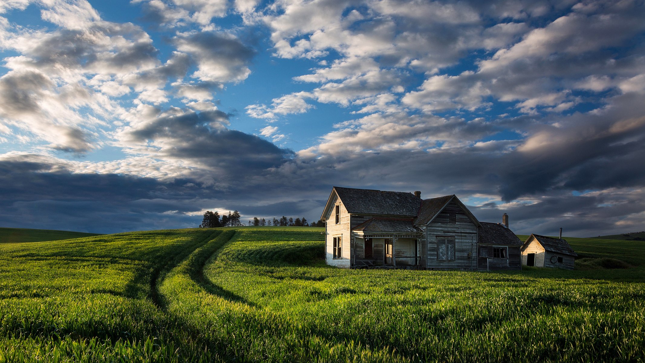 Belle vue sur le terrain avec des maisons. Ciel avec des nuages luxuriants