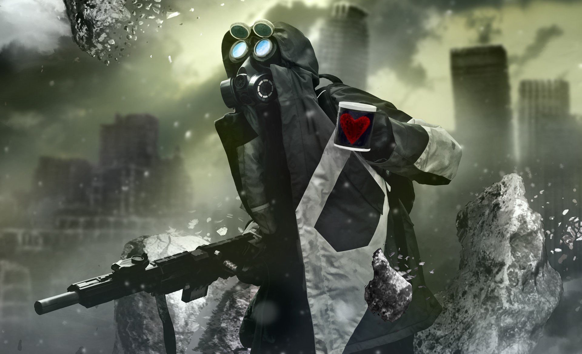Fille post-Apocalypse avec un robot et une arme à feu