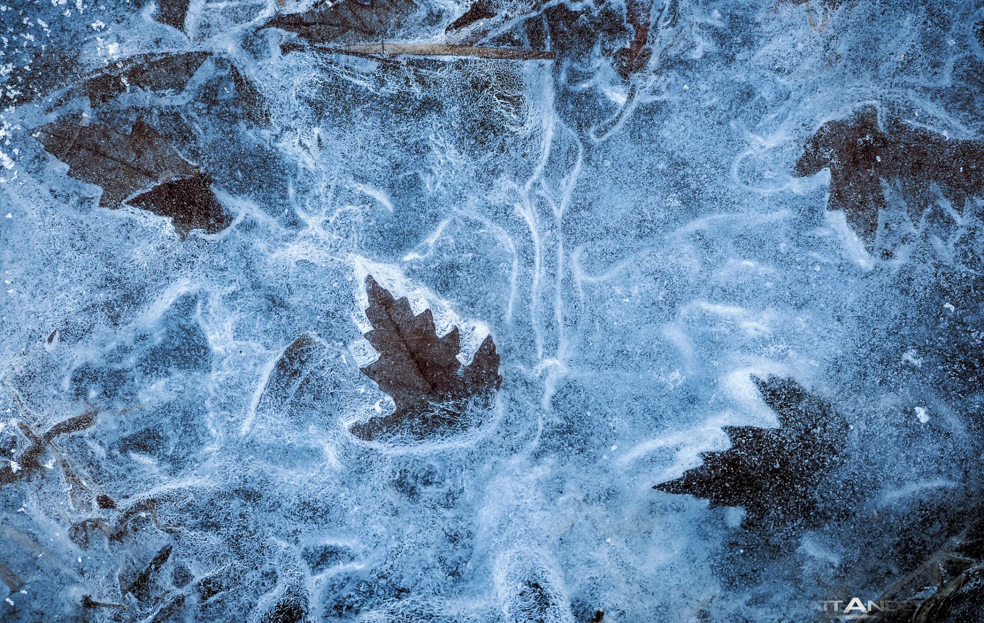 Feuilles sèches dans la glace esthétique - fond d'écran de bureau
