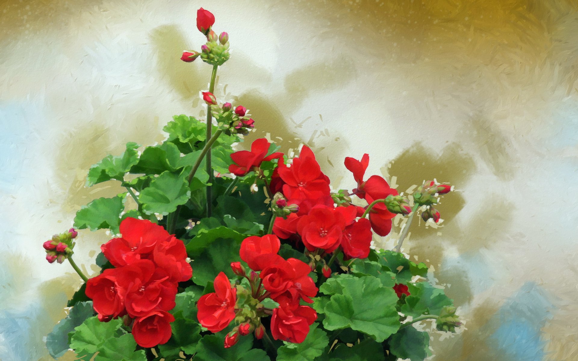 Fleurs rouges avec des feuilles vertes - fond d'écran de bureau