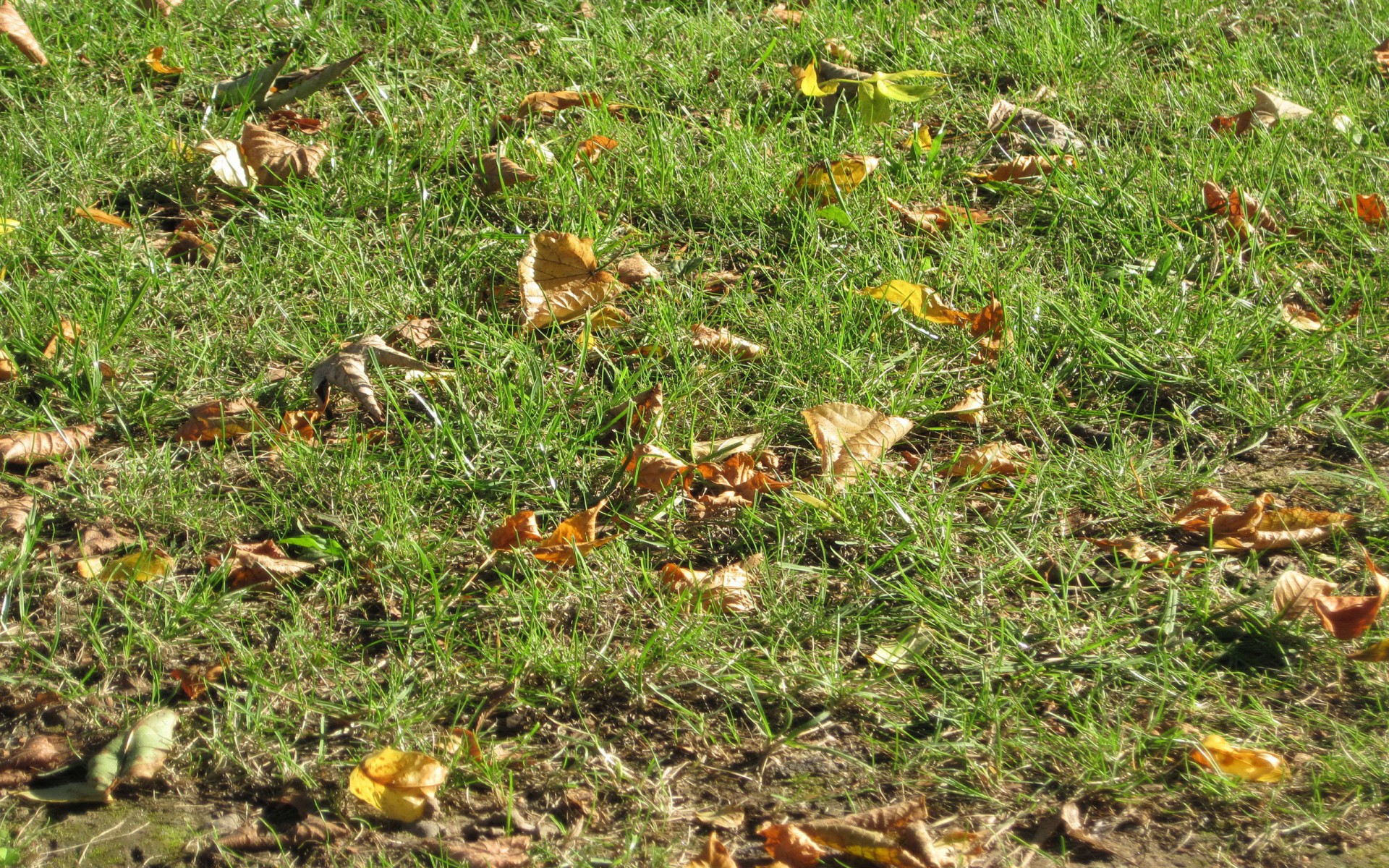 Les feuilles mortes se trouvent sur l herbe - fond d'écran de bureau