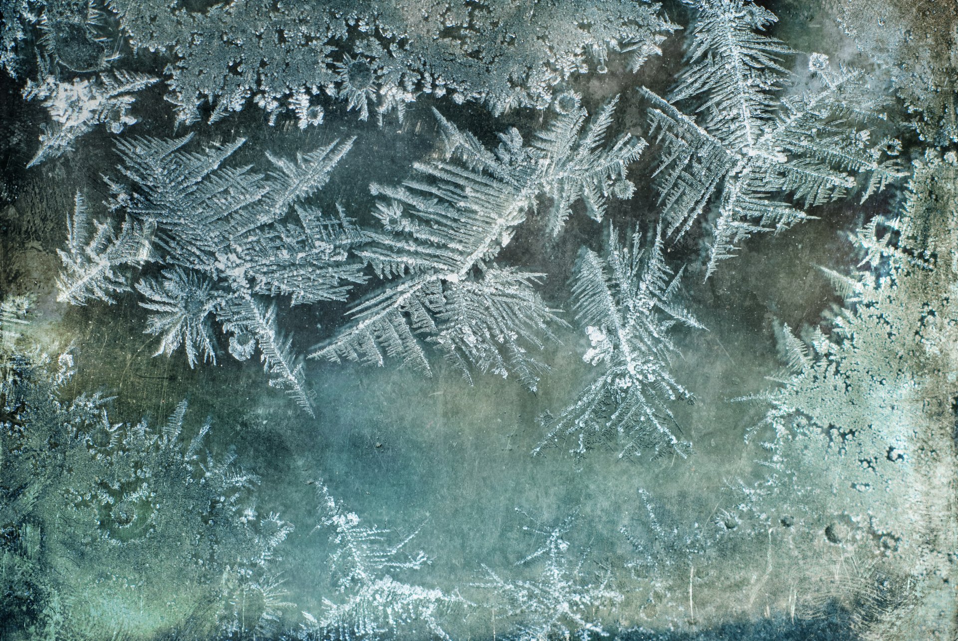 Macro de givre sur le verre en hiver - fond d'écran de téléphone