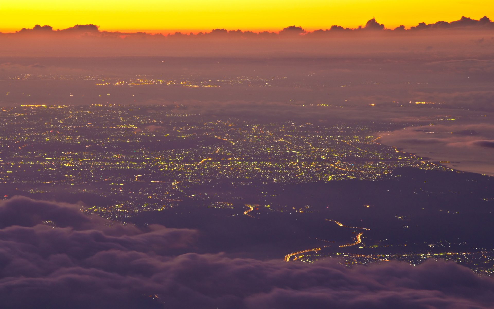 Fuji, une belle photo de la ville au coucher du soleil - fond d'écran de bureau