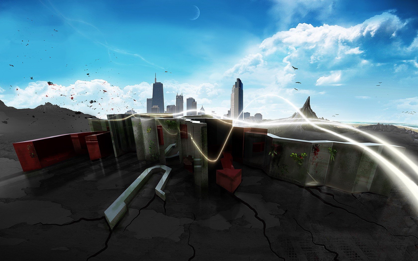 Paysage abstrait sur fond de ciel - fond d'écran de bureau