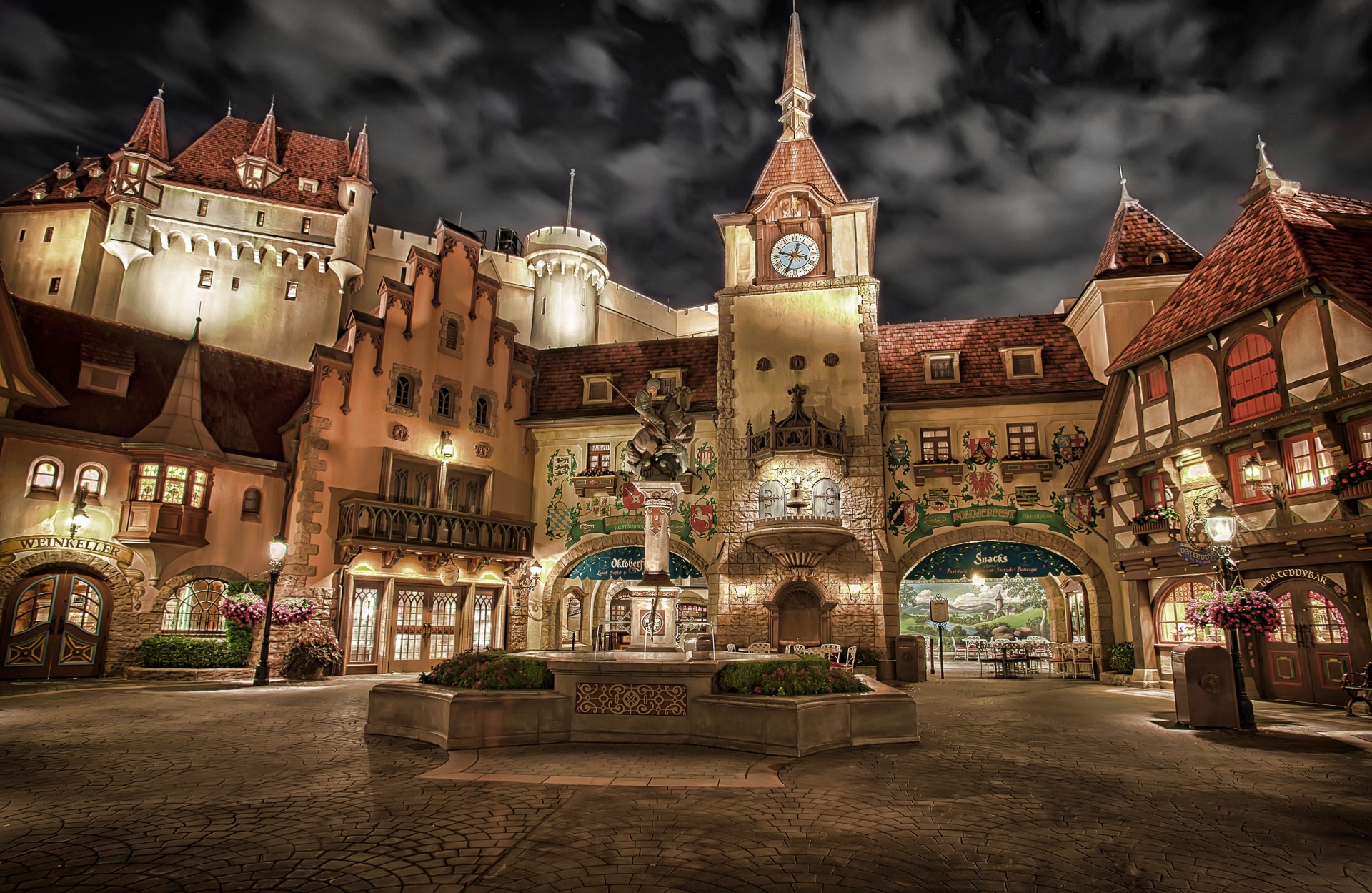 Place de nuit dans une ville allemande - fond d'écran de bureau