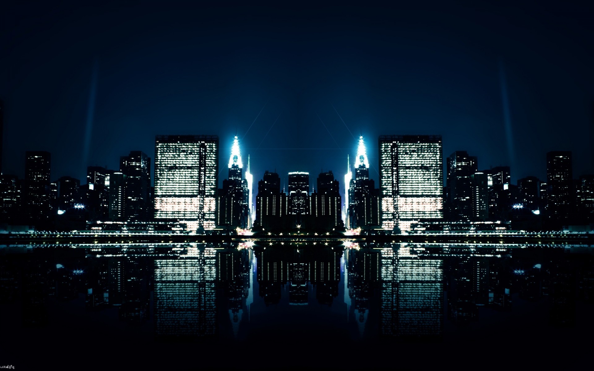 Réflexions sur la rive de la rivière sur le fond de la ville de nuit - fond d'écran de téléphone