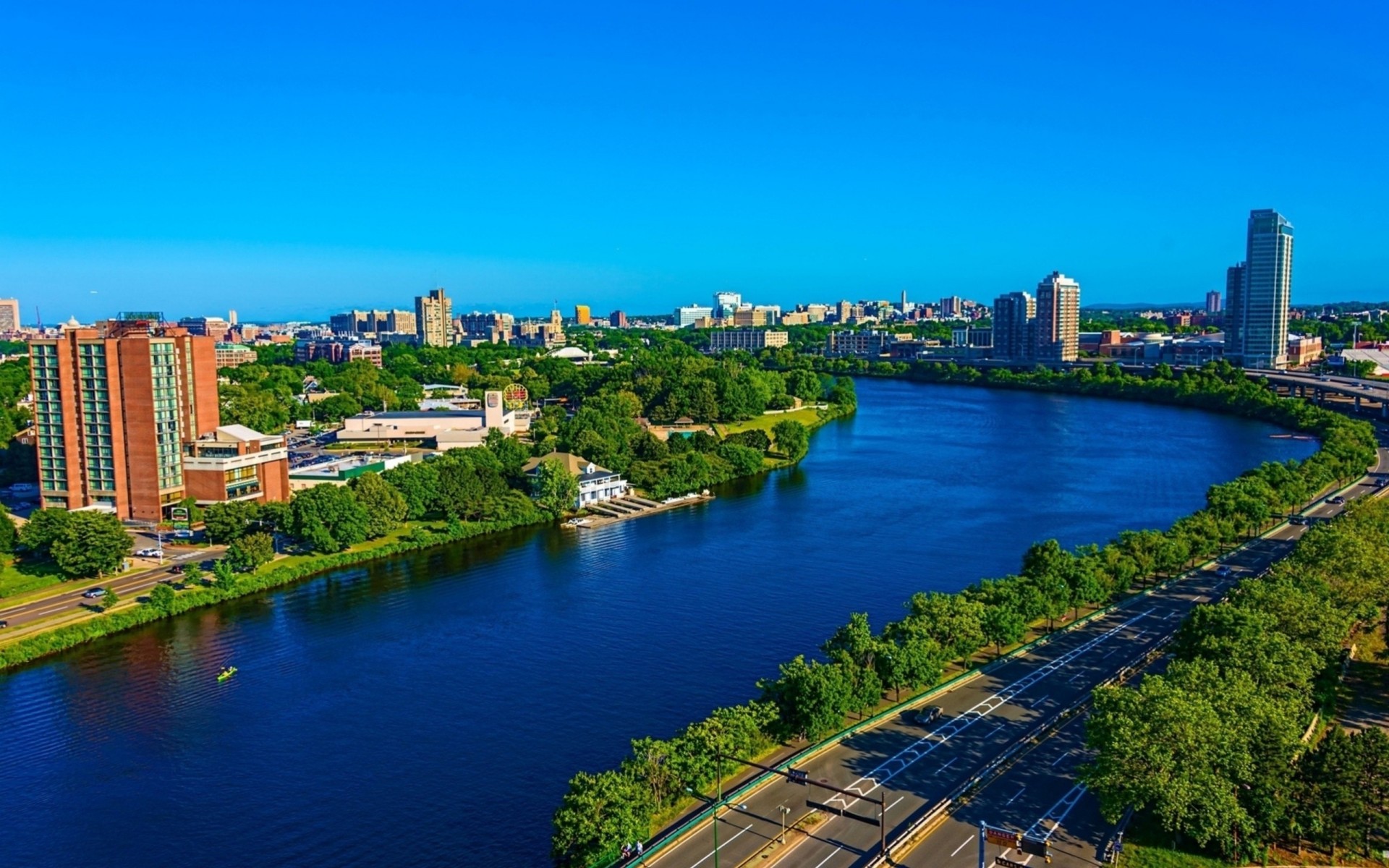 Belle ville d été sur la rivière - fond d'écran de téléphone