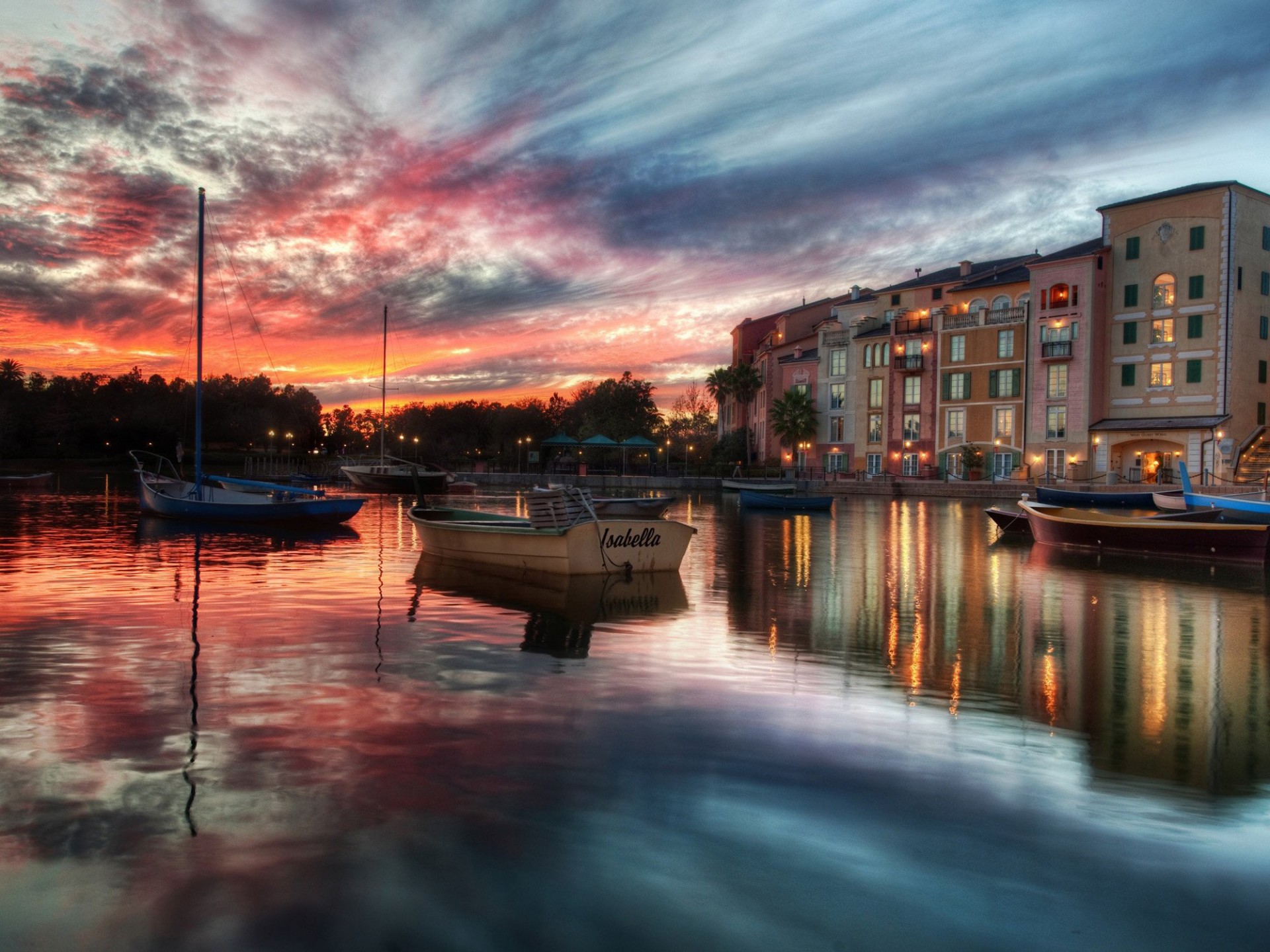 Tags:ciel, eau, réflexion, bateaux, maisons