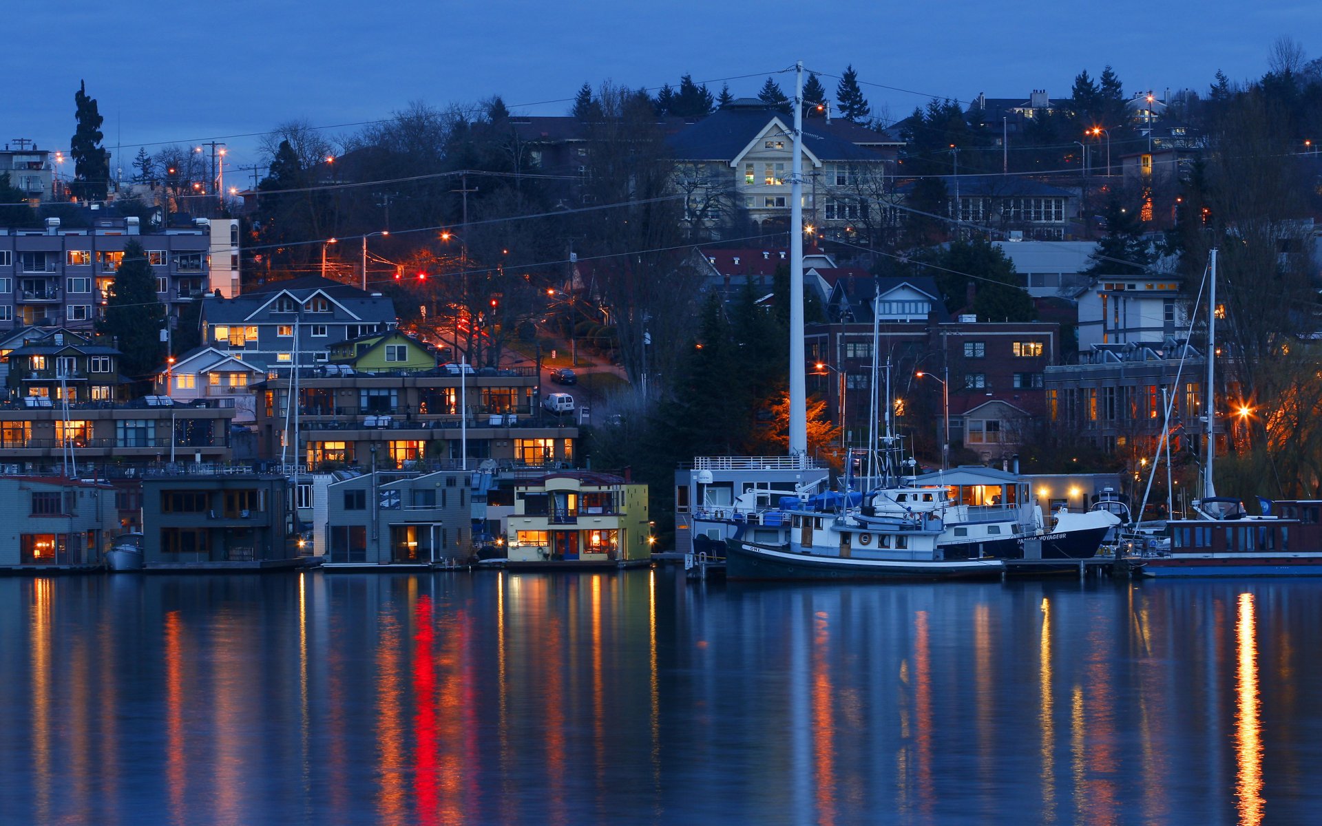 Photo du lac le soir, sur lequel on peut voir à la maison - fond d'écran de téléphone